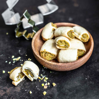 Butter stückchenweise hinzugeben und per Hand zu einem glatten Teig verkneten. Teig zu einer Kugel formen, in Folie wickeln und mindestens 30 Minuten kalt stellen. In der Zwischenzeit den Backofen vorheizen (Ober-/Unterhitze 180 °C/ Umluft 160 °C).