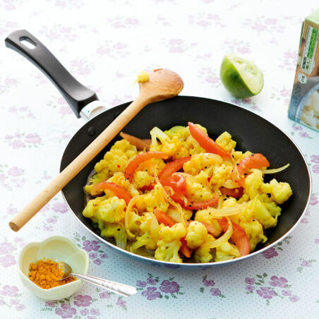 Schnell und simpel ‒ mit Bio-Röschen aus dem Tiefkühlfach. Für den indischen Touch sorgen die Gewürze Kreuzkümmel und Kurkuma.