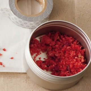 Die warme Sesammischung mit Salz entweder traditionell im Mörser (abhängig von dessen Größe in mehreren Durchgängen) oder im elektrischen Blitzhacker zu einem groben Pulver verarbeiten, einzelne Samen dürfen aber durchaus noch erkennbar sein. Bis zum Verschenken in luftdicht verschlossenen Behältern dunkel und kühl aufbewahren.