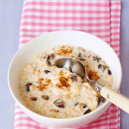 Statt süßem Milchreis gibt es süßes Graupenrisotto mit einem Hauch Zimt und Vanillezucker. Die zarten Getreidekörnchen liefern reichlich Magnesium, Eisen und Zink.