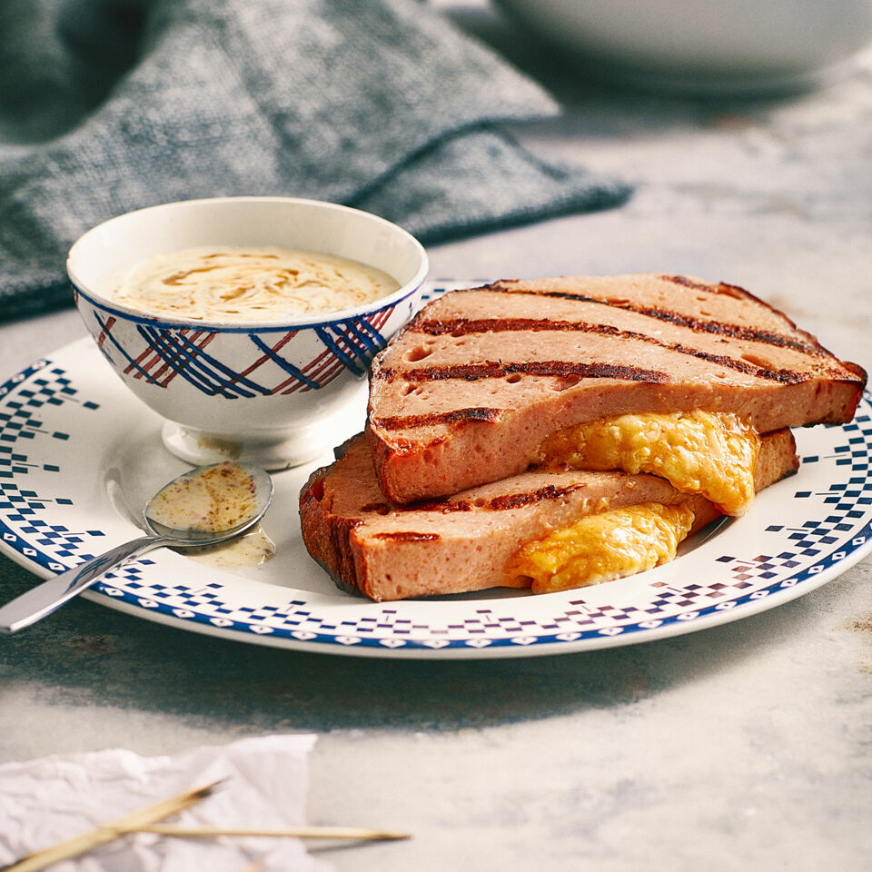Bayrischer Genuss im Doppelpack! Der Obazdn zum Leberkäse wird durch das Grillen schön weich und zergeht auf der Zunge.