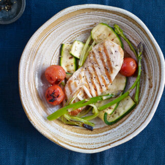 Das Gemüse waschen, trocken tupfen und putzen. Aubergine und Zucchino in knapp 1 cm dicke Scheiben oder Stücke schneiden. Den Spargel von den holzigen Enden befreien. Den Fenchel längs halbieren und ohne den Strunk in gleichmäßige Stücke teilen. Die Paprikaschote vierteln.