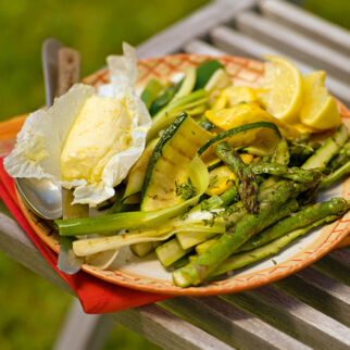 Passend zum Lamm gleich die Beilage mit viel Gemüse und Kräutern frisch vom Grill – oder eine knackige Alternative für Vegetarier.