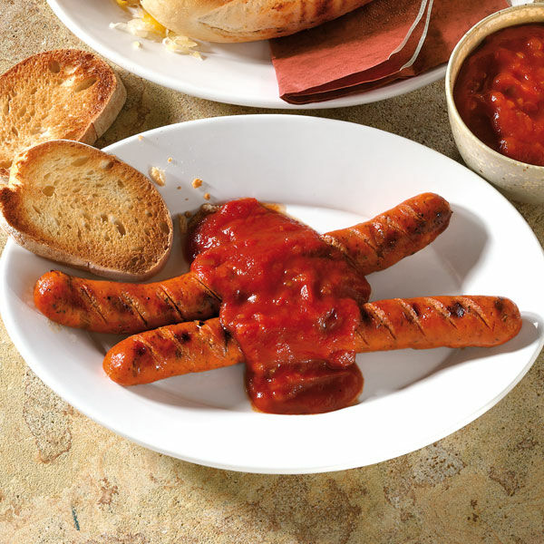 So wird in den amerikanischen Südstaaten gegrillt: Paprikawürste serviert mit einer äußerst pikanten kreolischen Sauce.