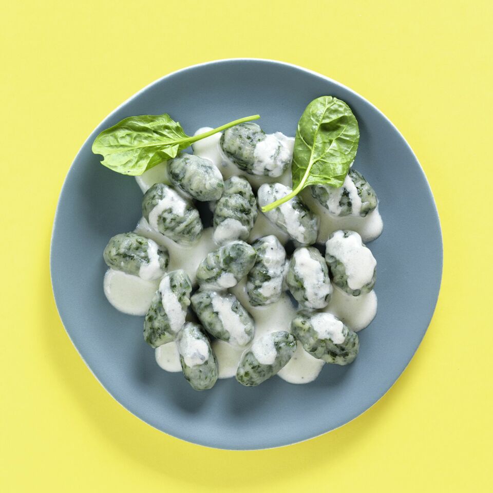 Schon gewusst: Gnocchi kannst du mit nur wenigen Zutaten selbst machen! Zu den Spinat-Kartoffelklößchen gibt es eine leckere Käsesauce.