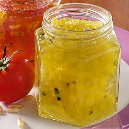 Ein neuartiges Geschmackserlebnis ist diese Konfitüre aus grünen Tomaten, Birnen und Ingwer.
