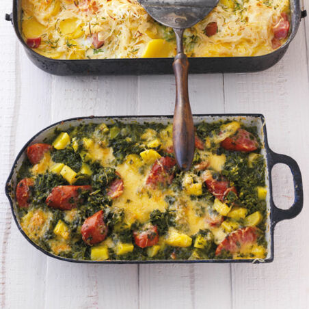Was wäre die norddeutsche Küche ohne Grünkohl? Und mit diesem Auflauf kann er durchaus neuen Freunde gewinnen.