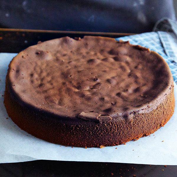 Die Mehl-Kakao-Mischung portionsweise unter die Schaummasse heben und mit dem letzten Drittel Mehlmischung die Butter einlaufen lassen und unterheben. Die Masse in die vorbereitete Springform oder den Tortenring füllen und im Ofen (Mitte) wie den hellen Biskuit in ca. 35 Min. backen.