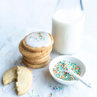 Puderzucker, Butter, Salz und Mehl verkneten und Eigelb dazugeben. Zu einem glatten Teig verkneten und in 4 gleichgroße Teile (á 200 Gramm) portionieren.