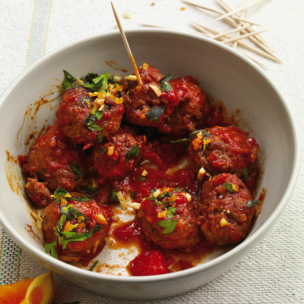 Hackbällchen sind in Spanien einen typische Tapa - mit dem würzig-fruchtigen Topping bekommen sie einen ganz neuartigen Geschmack.