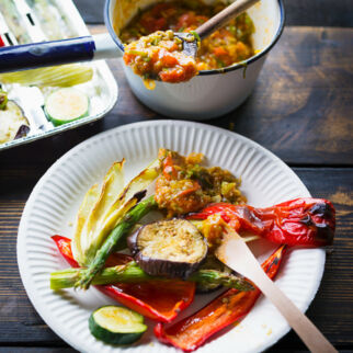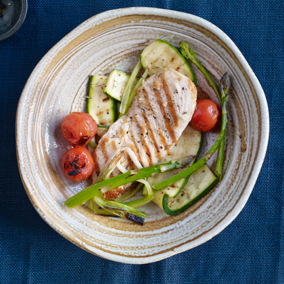 Für alle, die den leichen Genuss lieben. Hähnchenschnitzel und Gemüse werden ganz einfach in einer Grillpfanne zubereitet.