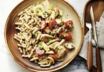 Kurz vor dem Servieren die Butter in einer zweiten Pfanne zerlassen. Die Spätzle darin bei kleiner bis mittlerer Hitze 3-4 Min. schwenken, mit Salz, Pfeffer und Muskat würzen. Mit dem Geschnetzelten anrichten und servieren.