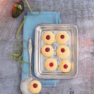 Unten knusprig, oben fruchtig: Hier können Sie auch mal eine andere Marmelade nehmen. Zum Beispiel Brombeergelee passt prima zu gehackten Walnüssen.
