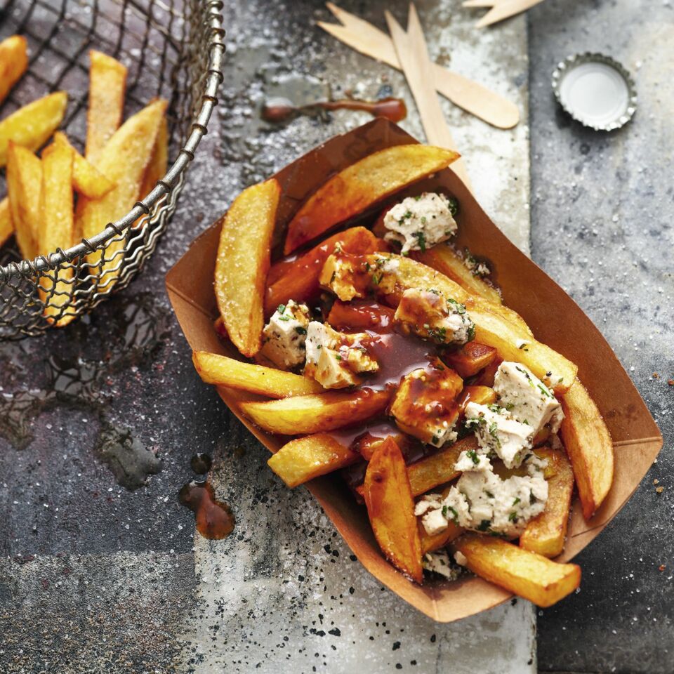 Der Käse muss bei diesem kanadischen Nationalgericht beim Draufbeißen quietschen. Das klappt hierzulande am besten mit Halloumi aus Zypern.