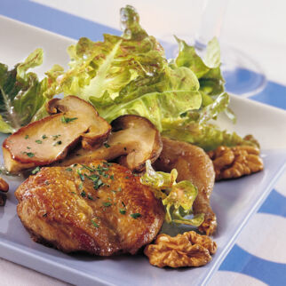 Backofen auf 220° vorheizen. Walnüsse mit Walnussöl und Honig verrühren. Hasenfilets mit Salz und Pfeffer würzen. Im heißen Öl von jeder Seite 1-2 Min. goldbraun anbraten. Das Fleisch aus der Pfanne heben, auf eine feuerfeste Platte legen und mit der Walnussmasse bestreichen. Hasenfilets im Backofen (Mitte, Umluft 200°) 8-10 Min. goldbraun überbacken.