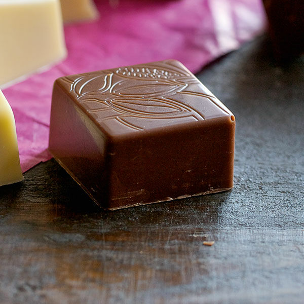 Die Form gründlich säubern. Kuvertüre hacken, schmelzen und temperieren. Mulden damit ausgießen, überschüssige Kuvertüre herausgießen. Kuvertüre in ca. 2 Std. fest werden lassen.