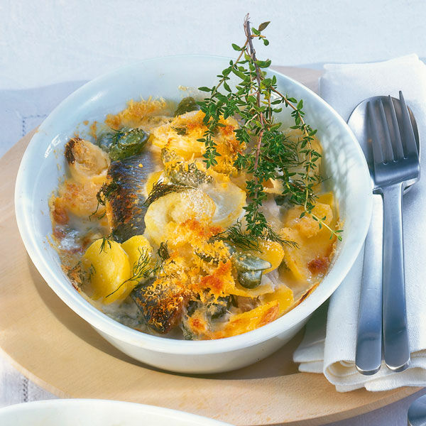 Schon die Zubereitung des Kartoffelauflaufs verspricht etwas Besonderes, die Heringfilets zwischen den Kartoffelschichten machen den schlichten Auflauf zum Highlight.