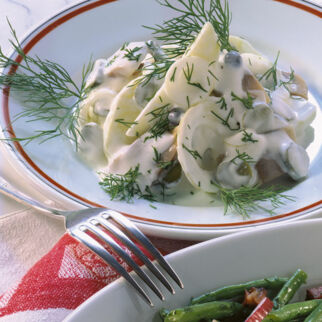 Ein köstliches Gericht, das man am besten schon am Vorabend zubereitet - wenn der Hering lange durchgezogen ist, schmeckt's erst so richtig gut.