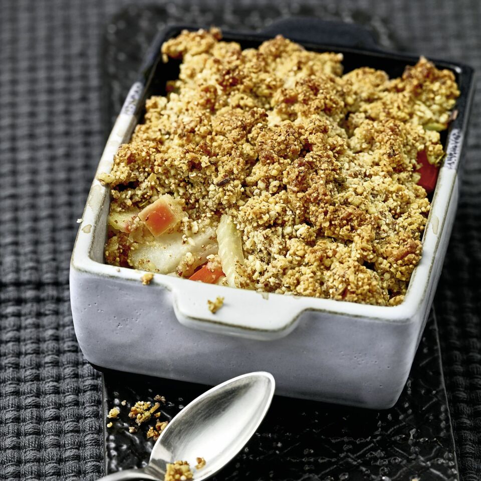 Bei diesem herzhaften Crumble für den Thermomix verstecken sich viele Vitamine unter der Knusper-Haube.