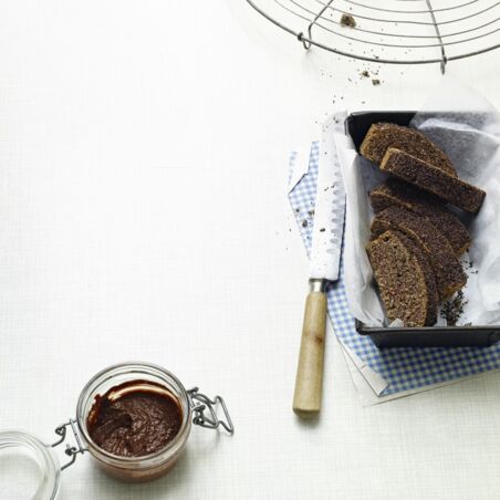 Die Form aus dem Ofen nehmen, den Kuchen herauslösen und auf dem Kuchengitter auskühlen lassen. Der Kuchen kann wie Brot verwendet werden und schmeckt z. B. sehr gut mit den Aufstrichen auf den folgenden Seiten.