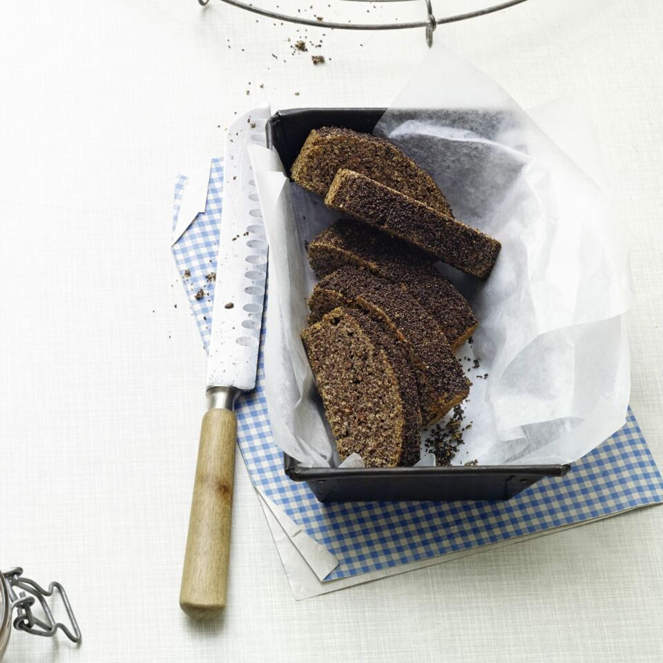 Dann den Teig in die Kastenform füllen, glatt streichen und den restlichen Mohn darüberstreuen. Im Ofen (Mitte) 40 Min. backen.