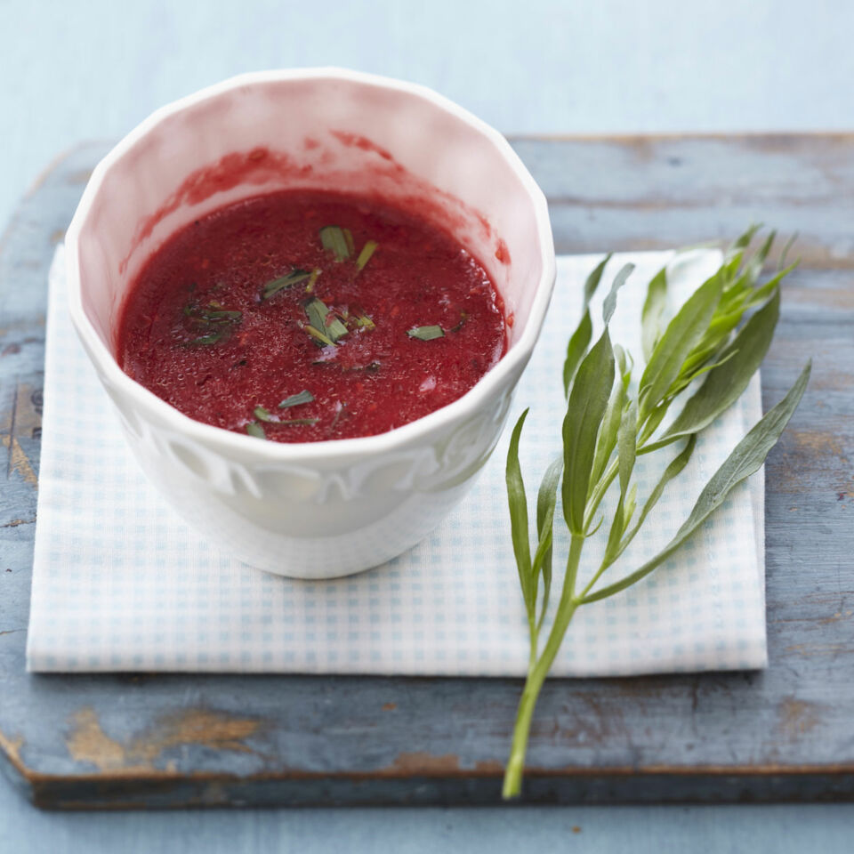 Die Himbeervinaigrette passt perfekt zu allen Blattsalaten. Aber auch zu gebratenem oder gegrilltem Hähnchen serviert ist sie ein edler Hingucker.