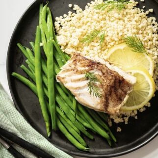 Die bunte Gemüse-Hirse mit Salz und Pfeffer würzen. In zwei Schüsseln füllen und servieren.