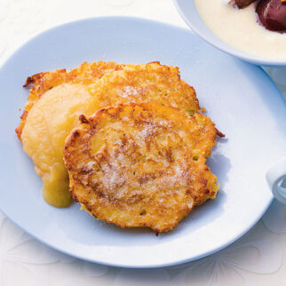 Zucker und Zimt gut mischen, falls verwendet. Den Brei damit bestreuen und mit dem Zwetschgenkompott servieren.