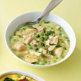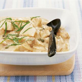 Zart gekochtes Hähnchenfleisch in Weißweinsauce zergeht einem förmlich auf der Zunge. Dazu genießt man am besten den Wein, den man auch zum Kochen verwendet hat.