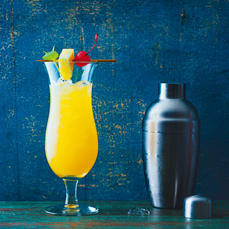 Der pustet durch: Der Hurricane wird mit zwei verschiedenen Rumsorten zubereitet. Limette, Orange, Ananas und Maracuja sorgen für die extra Portion Frucht und Farbe.