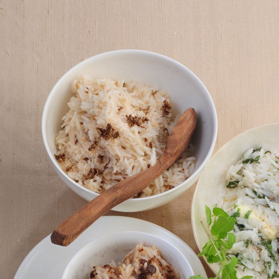 Der würzige Reis wird typisch indisch mit verschiedenen Gewürzen aromatisiert.