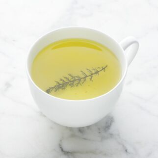 Den Ingwer schälen und in dünne Scheiben schneiden. Mit 1 l Wasser zum Kochen bringen, 2 Min. kochen lassen.