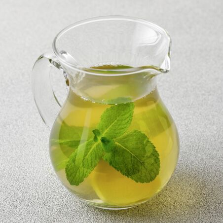 Minze waschen und mit dem kochenden Ingwerwasser aufgießen. Mind. 10 Min. ziehen lassen. Muss nicht abgesiebt werden und schmeckt heiß und kalt.