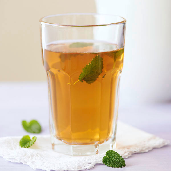 Alles durch ein Sieb in eine Tasse seihen. Die Melisse waschen, in den Tee geben und den Tee sofort heiß servieren.
