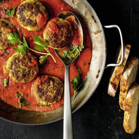 Spannende Gewürze verleihen den Fisch-Frikadellen einen ganz neuen Twist. Und in Tomatensauce köcheln sie dann ihrer Topform entgegen.