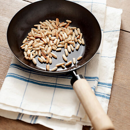 Die Basilikumnocken in reichlich kochendem Salzwasser portionsweise garen. Sobald sie nach ca. 3 Min. an die Oberfläche steigen, herausnehmen und in eine vorgewärmte Form setzen. Pinienkerne über die Fischpfanne streuen und Nocken dazu servieren.