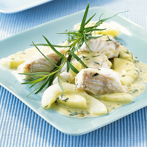 Der Kabeljau wird in der Estragon-Gurken-Sauce gedünstet und erhält dadurch ein wunderbares Aroma.