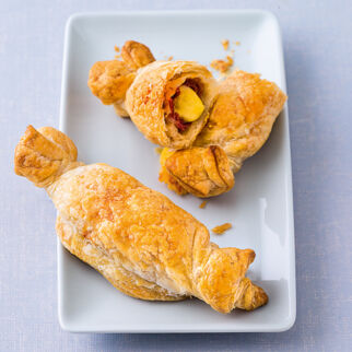 Den Käse in drei Stücke teilen. Jeweils eine Seite mit Butter bestreichen und in eine Pfeffermischung drücken. Die Stücke in ca. 2 cm große Würfel schneiden und servieren.