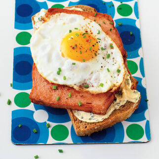 Die Butter in einer kleinen beschichteten Pfanne heiß werden lassen. Die Frühlingszwiebeln darin bei mittlerer Hitze ca. 1 Min. andünsten. Die Eiermasse darübergießen. Sobald das Ei an den Rändern zu stocken beginnt, mit einem Holzlöffel zur Mitte hin zusammenschieben. Das langsam so lange wiederholen, bis das ganze Ei gestockt ist. Das Rührei heiß mit Brot essen.