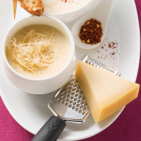 Im Piemont wird die Käsesauce pur mit frisch gehobeltem weißem Trüffel und Weißbrot serviert. Die Fonduta wird nur mit Fontina-Käse zubereitet.