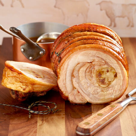 Damit bei der Zubereitung aber garantiert nichts herausfällt, den Rollbraten am besten noch der Länge nach mit Küchengarn binden.