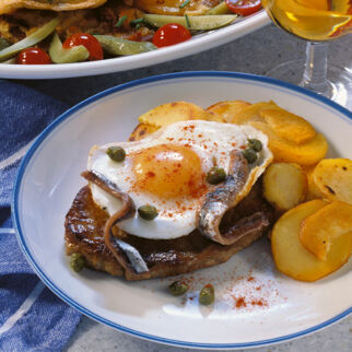 Die Butter in einer Eisenpfanne erhitzen und die Frühlingszwiebeln darin ca. 2 Min. schwenken, bis sie weich sind. Die Pfanne vom Grill ziehen. Den Parmesan, die Semmelbrösel und die Kapern zu den Frühlingszwiebeln geben. Die Mischung mit Salz und Pfeffer abschmecken.