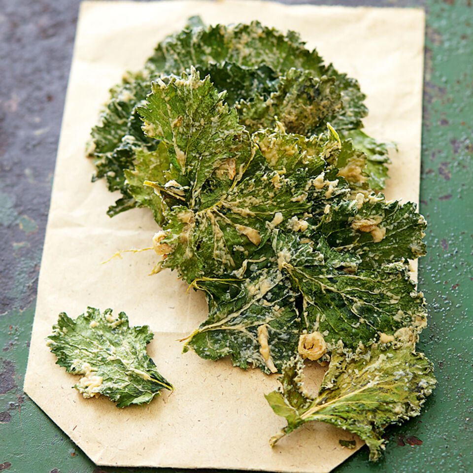Die fertigen Grünkohlchips gleich essen oder luftdicht verschließen und ein oder zwei Tage aufbewahren.
