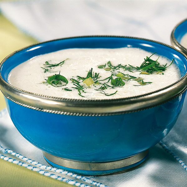 Eine erfrischende Vorspeise am heißen Tagen - die kalte Artischockensuppe mit Joghurt.