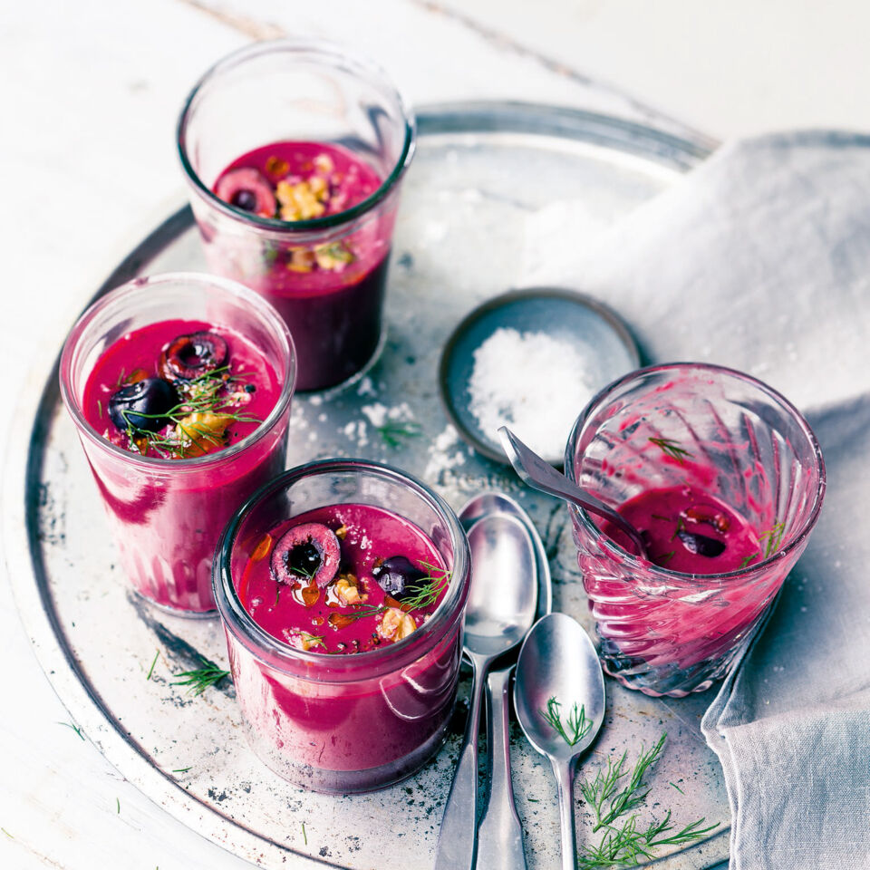Gazpacho, Salmorejo: Wenn es um Suppen für heiße Sommertage geht, spielen die Spanier ganz weit vorne. Heute mal ganz raffiniert mit Kirschen!