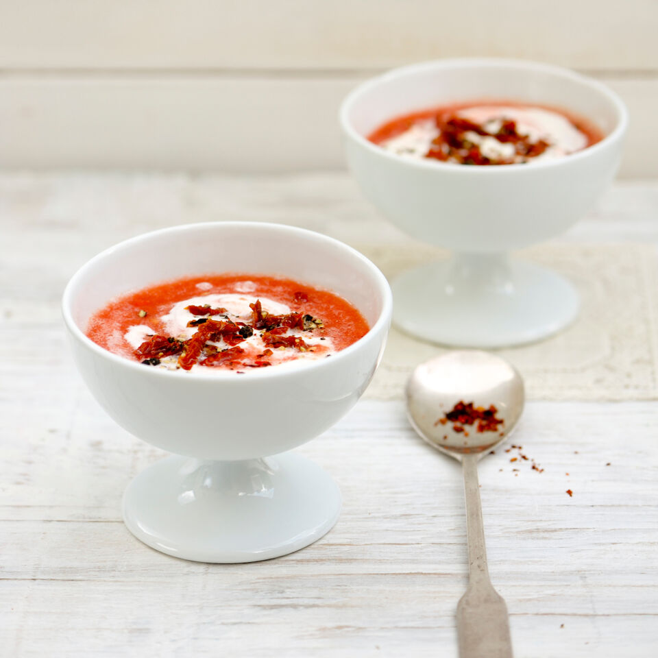 Eine tolle Suppe für heiße Tage. Sie ist ganz schnell aus wenigen Zutaten zubereitet und schmeckt herrlich aromatisch nach frischen Tomaten mit einem Hauch Süße.