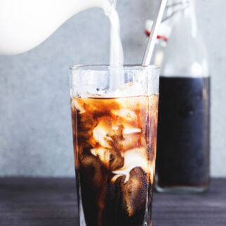 Der Sirup ist die Basis für heiße und kalte Karamell-Schokoladenmilch.