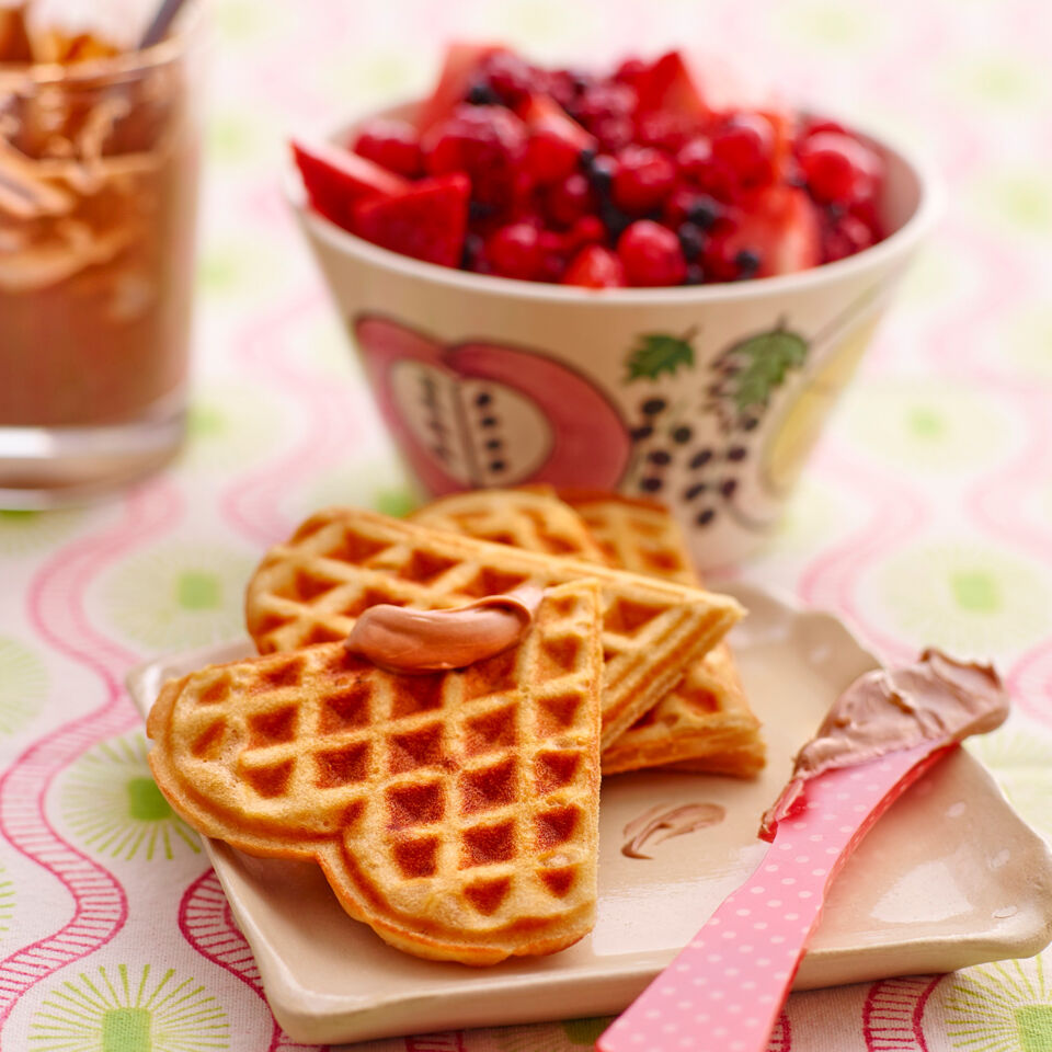 Süße Verführung: Zu diesen süßen Waffeln passt ganz wunderbar ein Salat aus gemischten Beeren, der für eine fruchtige Note neben dem Karamell sorgt.