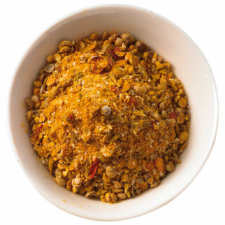Koriander, Senfkörner und Kreuzkümmel in einer Pfanne ohne Fett rösten, bis sie duften. Kokosraspel zugeben und unter Rühren mitrösten, bis sie bräunen. Abkühlen lassen, im Blitzhacker zerkleinern und mit den anderen Gewürzen mischen.