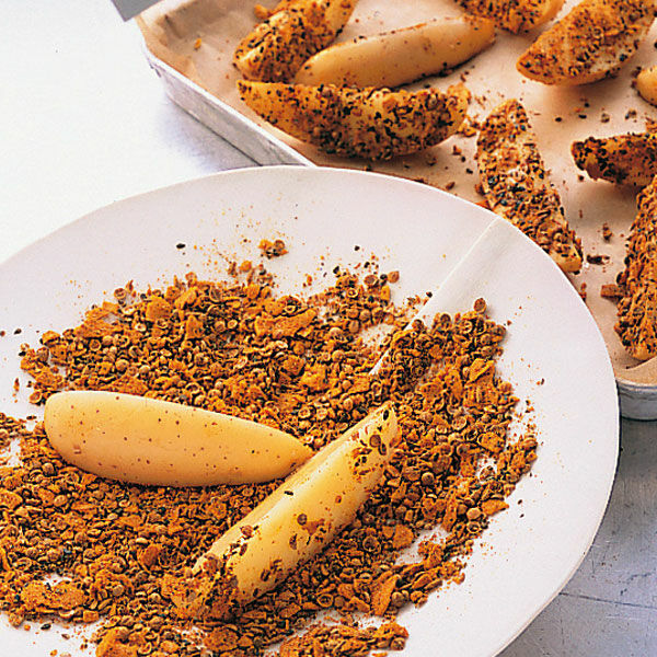 Potato Wedges einmal ganz anders: Kokosraspel, Gewürze und Cayennepfeffer geben diesem spannenden Fingerfood eine knusprig-scharfe Panade.